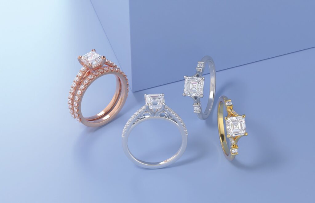 Introduced in the early 1900s, the Asscher shape features step-cut facets and cropped corners that create a unique “hall of mirrors” effect when looking deep into the center of the stone
